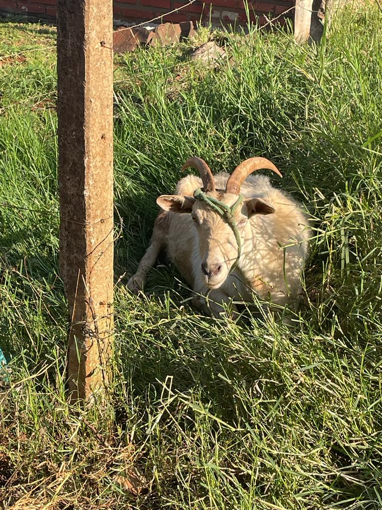 Una cabra de pelaje color blanco