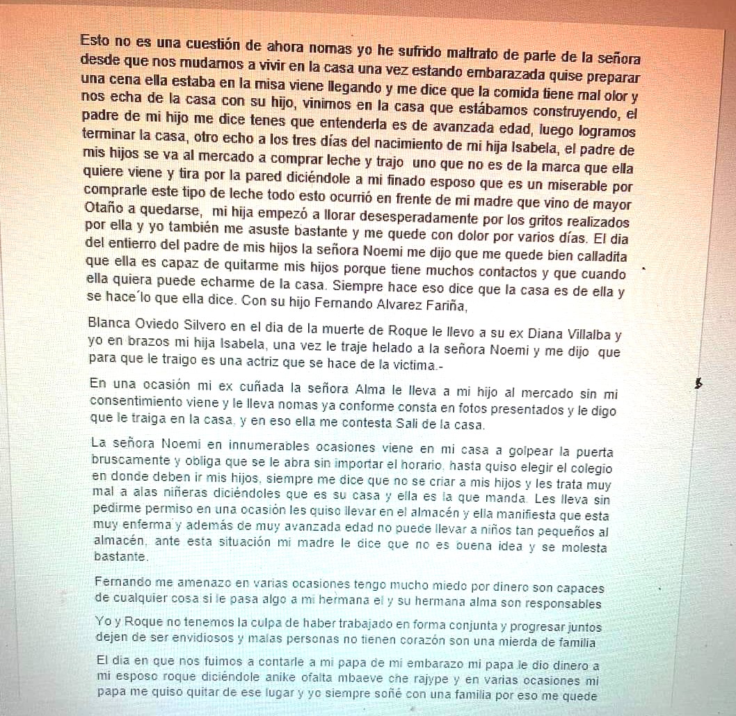 Otro hecho que llamo la atención en las ultimas declaraciones de la fiscal, es que la misma no tuvo en cuenta la nota que dejo la escribana, Carmen, donde realiza fuertes acusaciones contra su suegra, Noemi Alvarez, su cuñado Fernando Fariña, su cuña Alma Fariña, Blanca Oviedo.