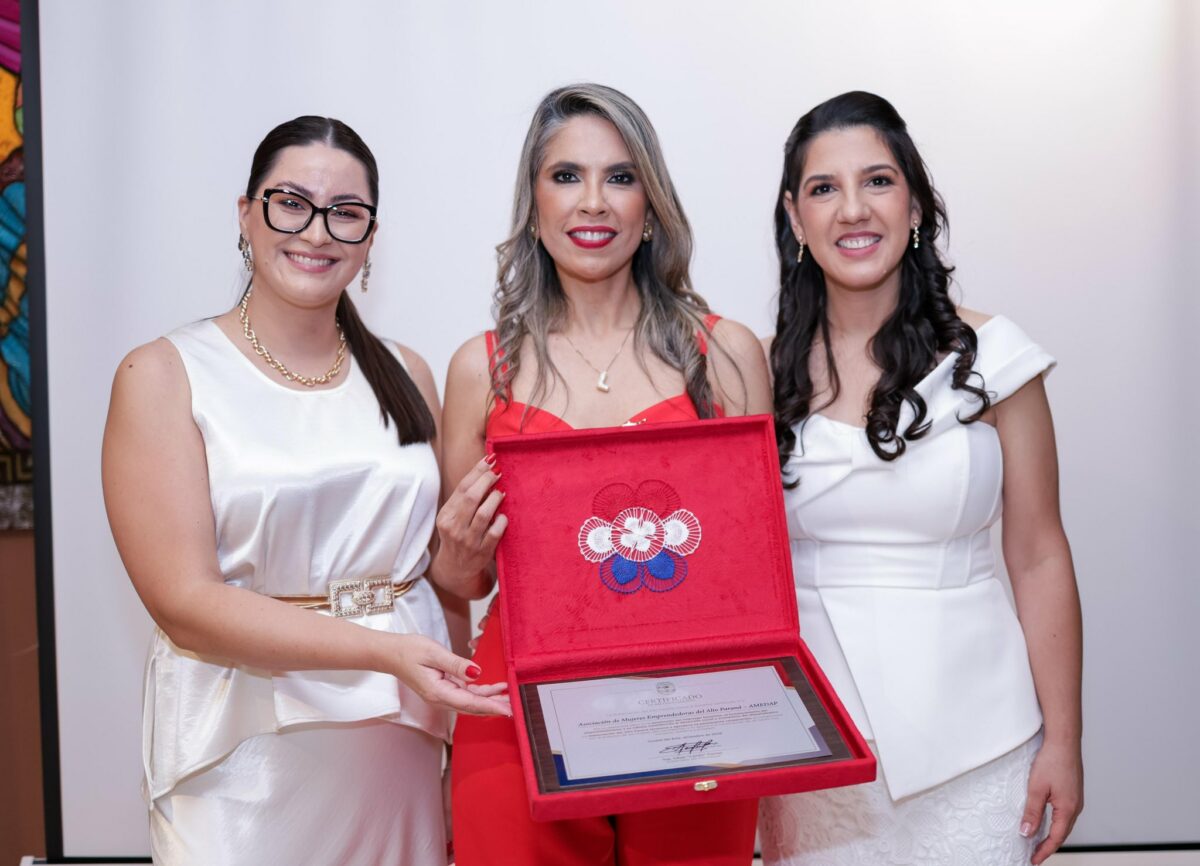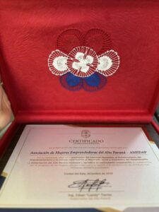 La Primera Dama Departamental Abg. Mirna Wolf hizo entrega de un Reconocimiento Especial a la AMEDAP, la Asociación de Mujeres Emprendedoras del Alto Paraná, encabezada por su presidenta Liz Montiel.