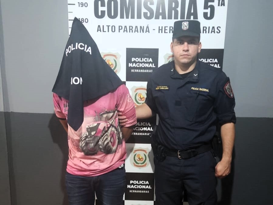 Tras la intervención policial, el sospechoso fue informado de sus derechos constitucionales y posteriormente trasladado en una patrullera hasta la Comisaría 5ª de Hernandarias, donde permanece recluido a disposición del Ministerio Público.