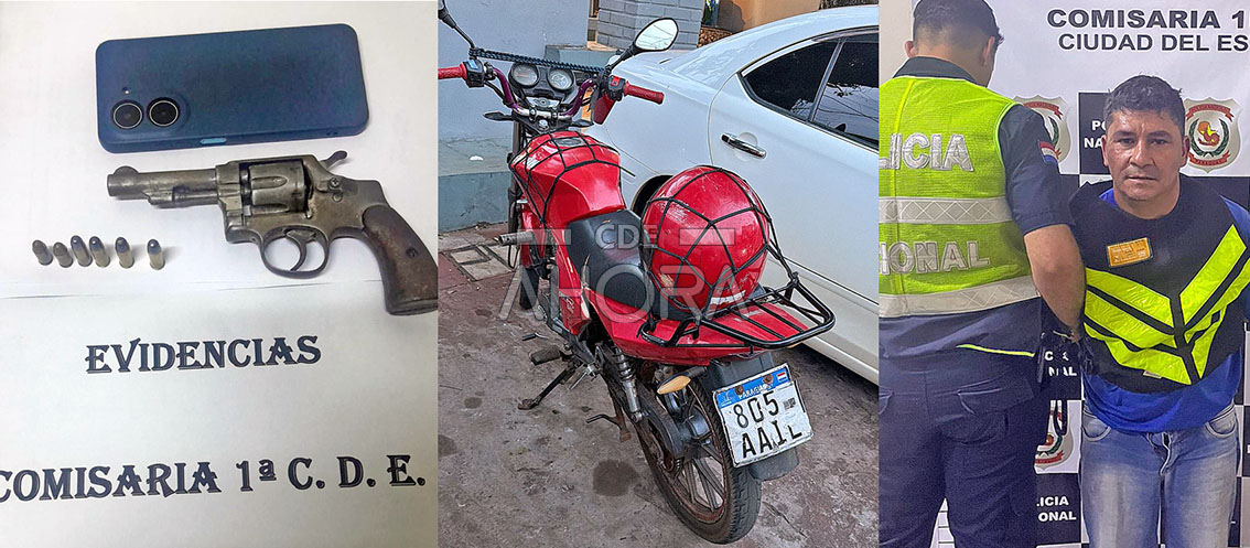 De su poder fue incautado un revólver calibre 32 mm con seis cartuchos vivos, además de un aparato celular y una motocicleta Kenton GTR150, color rojo.