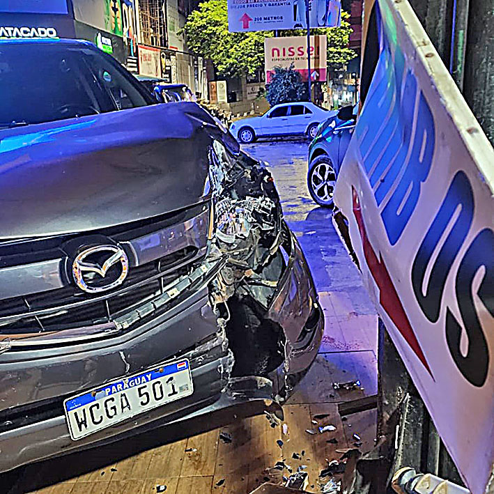 Un violento choque entre dos camionetas arrojó a uno de ellos contra un puesto de cambio de divisas en la intersección de las avenidas Adrián Jara y Carlos A. López del microcentro de Ciudad del Este, en la madrugada de hoy. Solo se registraron daños materiales.