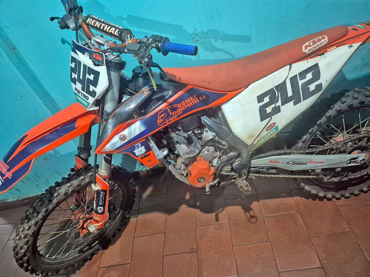 Según el relato policial, agentes de patrulla visualizaron al conductor realizando exhibiciones indebidas con una motocicleta KTM 250 cc, color anaranjado, que además circulaba sin chapa.