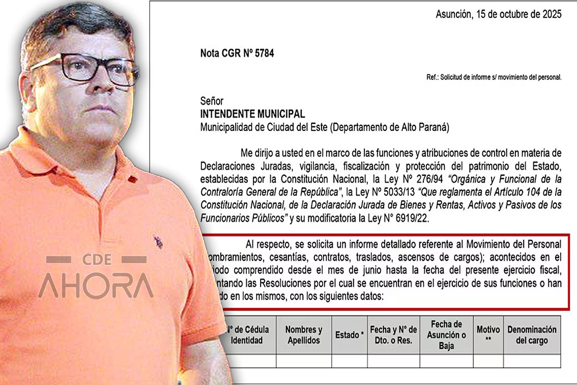 La Contraloría General de la República solicitó un informe detallado a la Municipalidad de Ciudad del Este tras revelarse que Daniel Pereira Mujica, exasesor de Miguel Prieto y actual candidato a intendente, no presentó su Declaración Jurada de Bienes al retirarse de la institución en julio pasado.