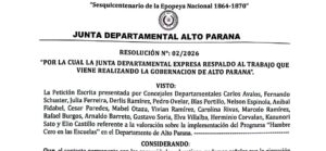 Durante la sesión ordinaria de la Junta Departamental, se emitió una resolución (N.° 02/2026) mediante la cual el pleno expresa su reconocimiento y apoyo al trabajo que viene desarrollando la Gobernación de Alto Paraná en la implementación del programa Hambre Cero, iniciativa que garantiza una mejor alimentación para los niños y niñas en las instituciones educativas del departamento, contribuyendo al bienestar, al aprendizaje y al desarrollo integral de nuestros estudiantes.