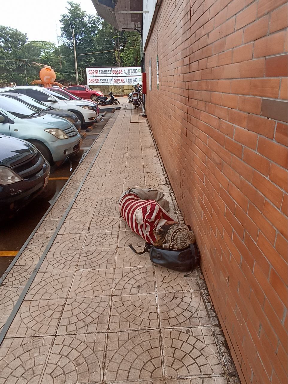 Es normal ver en las veredas y en los estacionamientos personas durmiendo en el suelo. Esta imagen hace un par de años no se veía casi en Ciudad del Este, pero actualmente se puede verlos en todos los lados y cada vez son más muchos.