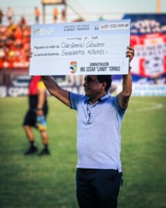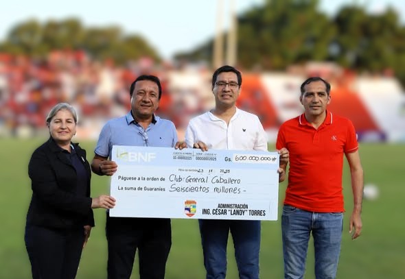 En plena jornada en que General Caballero y el Club Guaraní están disputando un gran encuentro, el gobernador Ing. César “Landy” Torres entregó un aporte histórico de 600 millones de guaraníes al club mallorquino, destinado a su futuro Complejo de Alto Rendimiento.