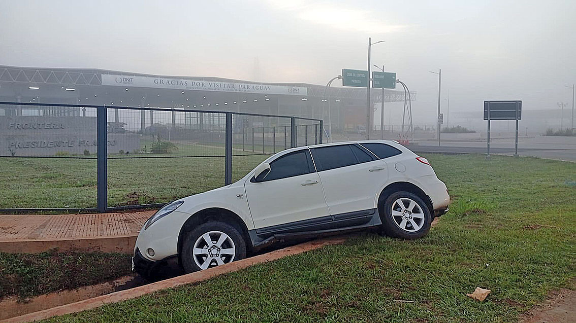 El incidente ocurrió alrededor de las 04:30 horas sobre la Avenida Bernardino Caballero, específicamente en la primera rotonda, frente mismo al acceso de la nueva pasarela internacional. El vehículo involucrado es una camioneta Hyundai Santa Fe, color blanco, con chapa AANC 364.