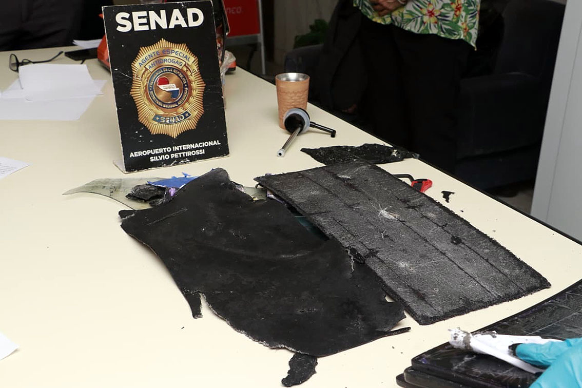 La carga hallada en el Aeropuerto Internacional Silvio Pettirossi estaba oculta en una caja de cartón que contenía un termo forrado y dos cuadros acrílicos, procedente de la ciudad de Limpio y con destino final a Cannington, Australia.