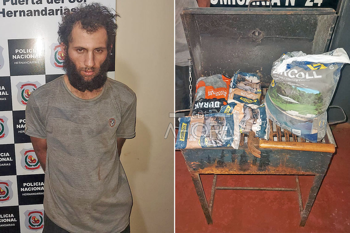 Agentes de la Comisaría 24ª del barrio Puerta del Sol aprehendieron en la noche del miércoles 22 de octubre a un hombre sorprendido en flagrante comisión de un hecho punible contra la propiedad de las personas (hurto), en el barrio Trigal III de la ciudad de Hernandarias.