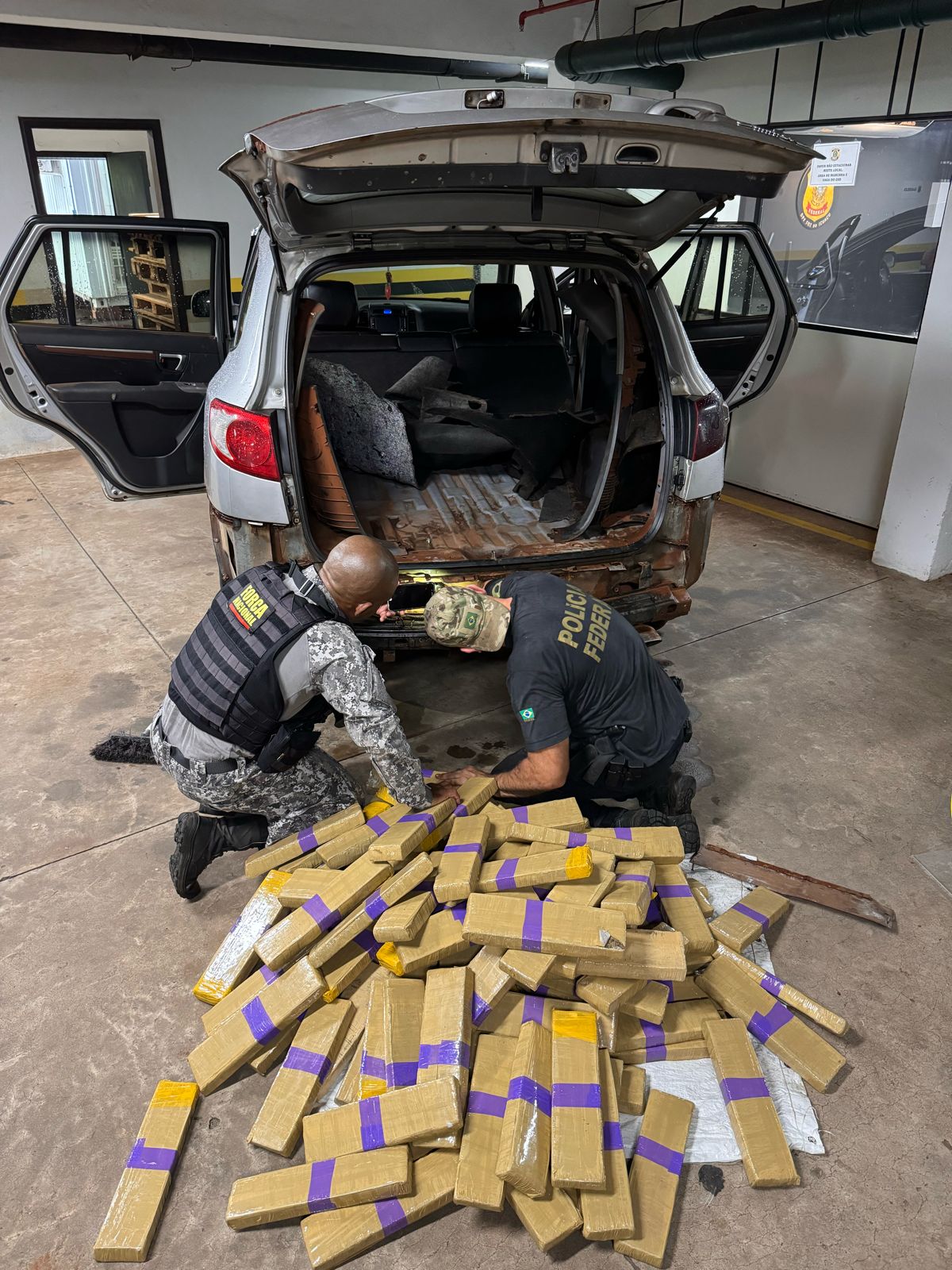 Este tipo de procedimiento cada vez es más rutinario en el lado brasileño de la pasarela internacional sobre el río Paraná. Sin duda llama la atención que vehículos como este lleno de drogas pasen por la aduana paraguaya sin que nadie se percate de nada.