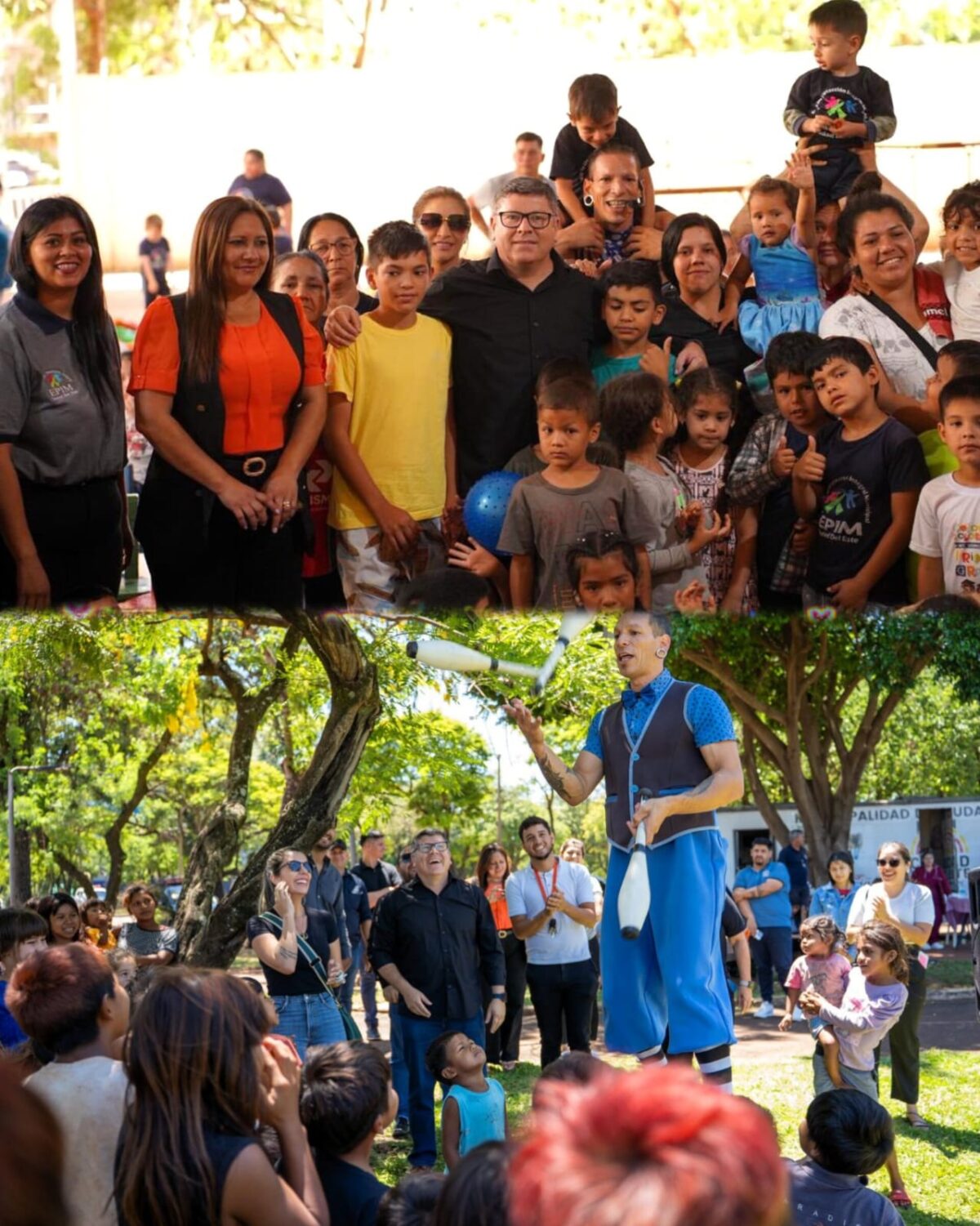 Pero en las fotos sobre lo ocurrido en el asentamiento nativo se puede ver que el intendente, Pereira Mujica, de ideología socialista, más bien comunista, se limita a mirar cuando un artista distraía a los niños nativos. Mostraron que llevaron una torta, y dieron panchos y gaseositas a los niños. Se ve si le dieron juguetes.