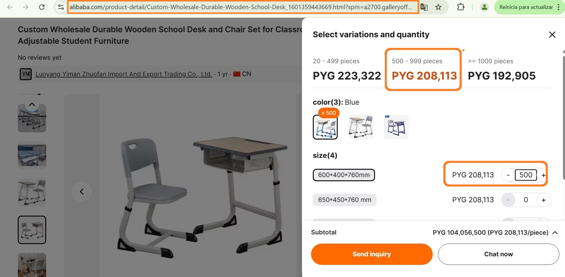 Este mueble más grande tiene un costo de 30 dólares en China Popular, a lo que hay que sumar los 17 dólares de costo; incluye impuestos, fletes, seguro y otros, según la publicación de ABC. O sea, son 47 dólares, más la ganancia de la empresa, unos 5 dólares, son 52 dólares, o sea, son 408 mil guaraníes, muy por encima del precio de referencia que pretendía, como techo, pagar Prieto, que era de 273 mil guaraníes.