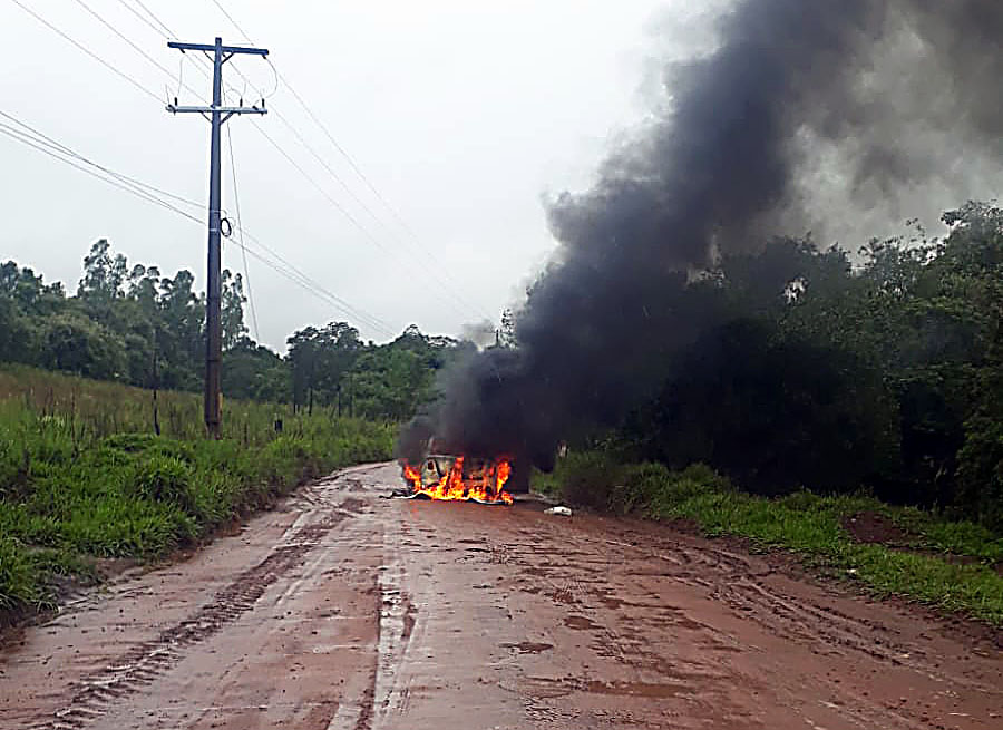 Tras el atraco, el grupo huyó rápidamente por la misma ruta en dirección oeste. Minutos después, agentes de la Comisaría 10ª encontraron un automóvil Toyota Allion incendiado a unos mil metros de la ruta nacional, en la calle Tacuaro, jurisdicción de Juan E. O’Leary. Se presume que los delincuentes lo quemaron para borrar evidencias.