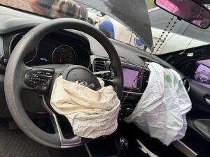 Estuve manejando en mi carril como corresponde. Esta señora hizo una curva cerrada y vino a chocar por mí de frente. El impacto fue fuerte porque mi auto se descuadró, se reventó el airbag de ambos lados, mi cara fue por el volante y mis brazos y boca con lesiones y, para más, mi cinturón se soltó por completo.