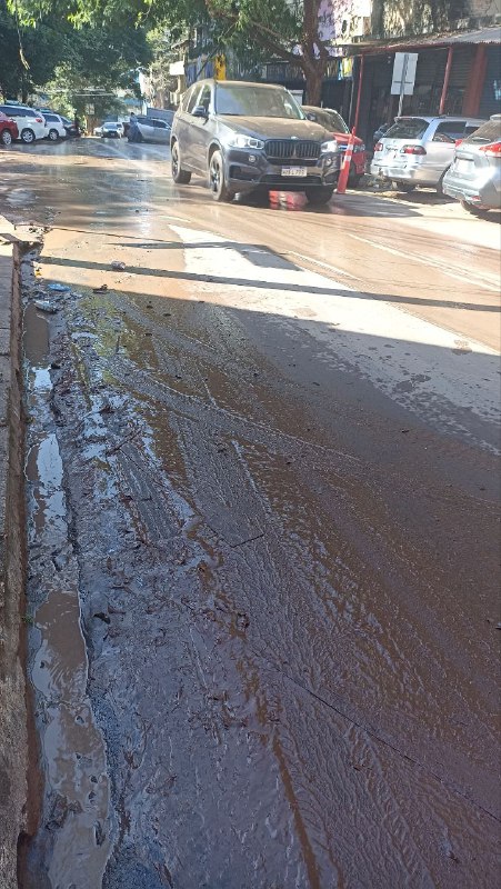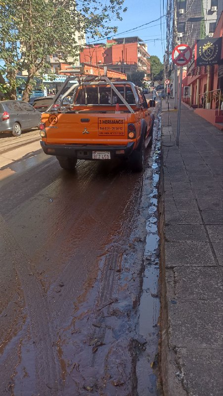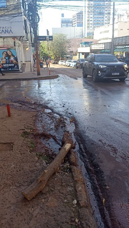Parte del agua con lodo se extiende igualmente por la calle Boquerón hasta llegar hasta la avenida Adrián Jara y de allí pasa por varias calles desembocando en la avenida Carlos Antonio López.