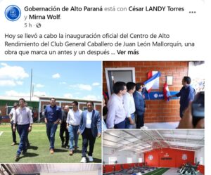 Hoy se llevó a cabo la inauguración oficial (26-11-2025) del Centro de Alto Rendimiento del Club General Caballero de Juan León Mallorquín, una obra que marca un antes y un después para el desarrollo deportivo del Alto Paraná y del país.