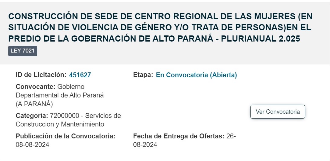 Recién en el octavo mes de 2024, el gobernador inició un proceso de licitación para ejecutar obras públicas en Alto Paraná. Son cuatro obras sin planificación que iniciaron. Tres son para edificios de instituciones estatales, y uno municipal.