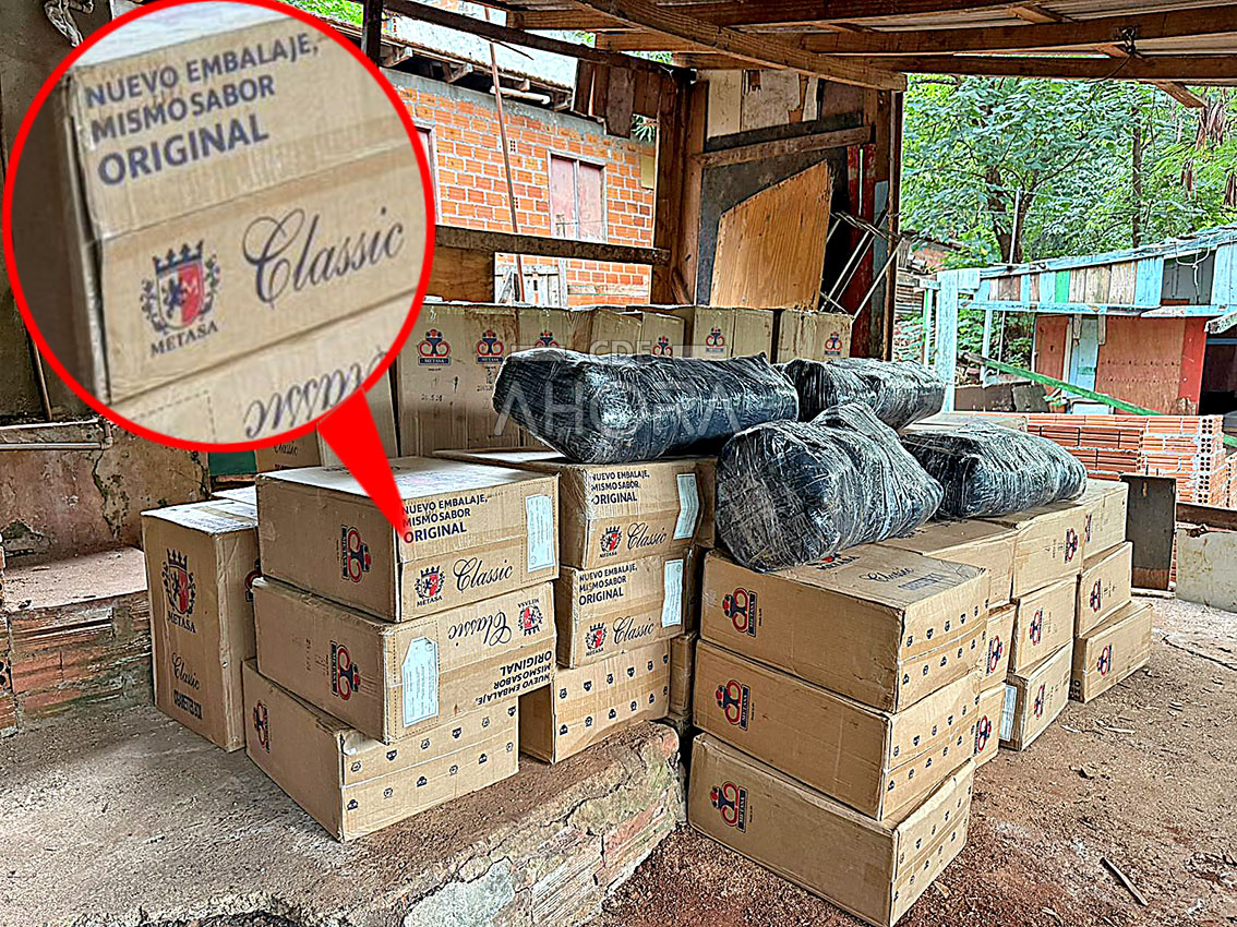 FOZ DE YGUAZÚ, BRASIL.– En un operativo conjunto entre la Policía Federal (PF), la Policía Militar y la Receita Federal, se logró la incautación de un importante lote de mercaderías de contrabando y estupefacientes. El procedimiento tuvo lugar en la zona conocida como Favela do Cemitério, un punto estratégico de la frontera donde se intensificaron los controles en el marco de la lucha contra el tráfico transnacional. Los cigarrillos de la marca Classic incautados son producidos por la tabacalera METASA (Mercury Tabacos S.A.), anteriormente Imperial Tabacos, ubicada en el barrio Don Bosco de Ciudad del Este.