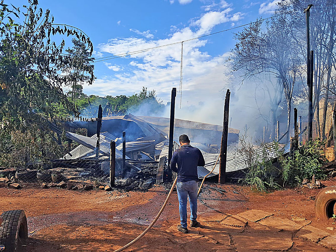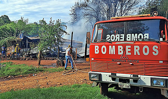 Para sofocar las llamas, acudió al lugar el Cuerpo de Bomberos de la Cooperativa Pindo, bajo la dirección del voluntario Jefersson Camargo Vieira.