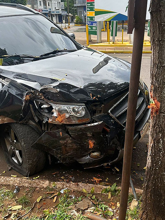 PRESIDENTE FRANCO. Un inusual accidente de tránsito se registró en la tarde de este domingo en el barrio Fátima de esta ciudad, cuando una camioneta estacionada se desplazó sin conductor por varios metros hasta terminar su marcha contra un árbol. Afortunadamente, el incidente solo dejó daños materiales en el vehículo y no se reportaron heridos ni otros rodados afectados en la zona.