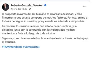 González Vaesken quiere ganar las elecciones municipales complementarias del próximo 9 de noviembre. Y lo pone en las redes sociales.