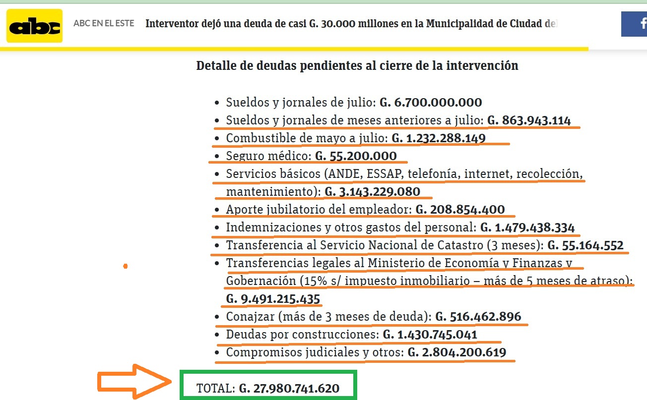 Pero después dijo que en realidad la deuda es de 22 mil millones de guaraníes. Ya bajó mágicamente 8 mil millones de guaraníes.