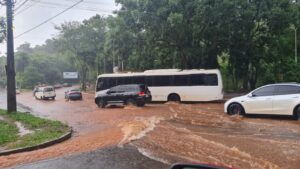 Se formaron enormes raudales, que dificultaban la circulación normal de los rodados. En Ciudad del Este el problema fue más visible en la calle Guillermina Núñez, entre el Centro Regional de Educación y la Gobernación de Alto Paraná.