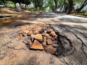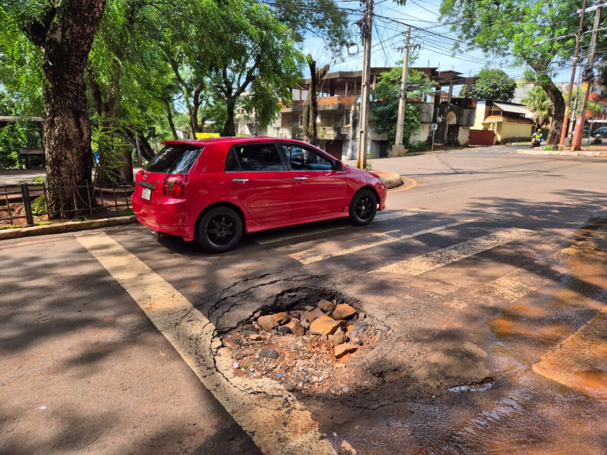 Son varios los baches que adornan Ciudad del Este en esta Navidad, pero no se muestran en las redes sociales, ni en los medios de prensa de Asunción. Uno de ellos está sobre la avenida 11 de Setiembre, casi Doctor Luis María Argaña. Es enorme y está en pleno centro comercial de CDE. A un costado de la Iglesia Catedral, a dos cuadras del nuevo local del Shopping China y Shopping Paris, a menos de 50 metros del futuro local de Cell Shop. A una cuadra del casino. Por allí pasa el bus que realiza el City Tour.