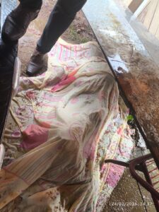 Según su relato, el fallecido habría intentado abrir el portón de la vivienda cuando un tirante de madera que se encontraba sobre la estructura cayó y le produjo una herida que presumiblemente causó su muerte.