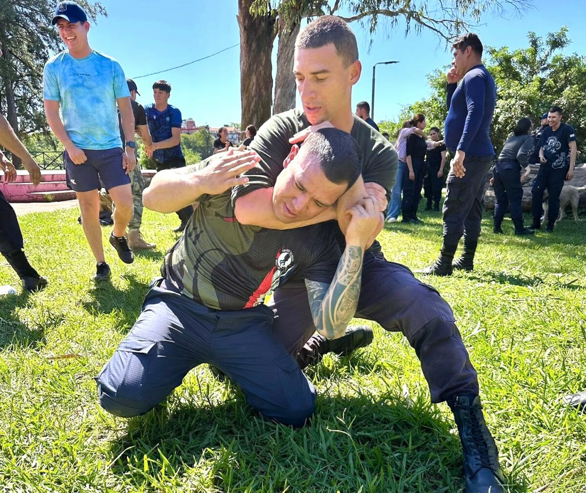 Agrega: Agentes participaron de una jornada de capacitación en defensa personal, con técnicas de sumisión e inmovilización, orientadas al manejo seguro de situaciones conflictivas.