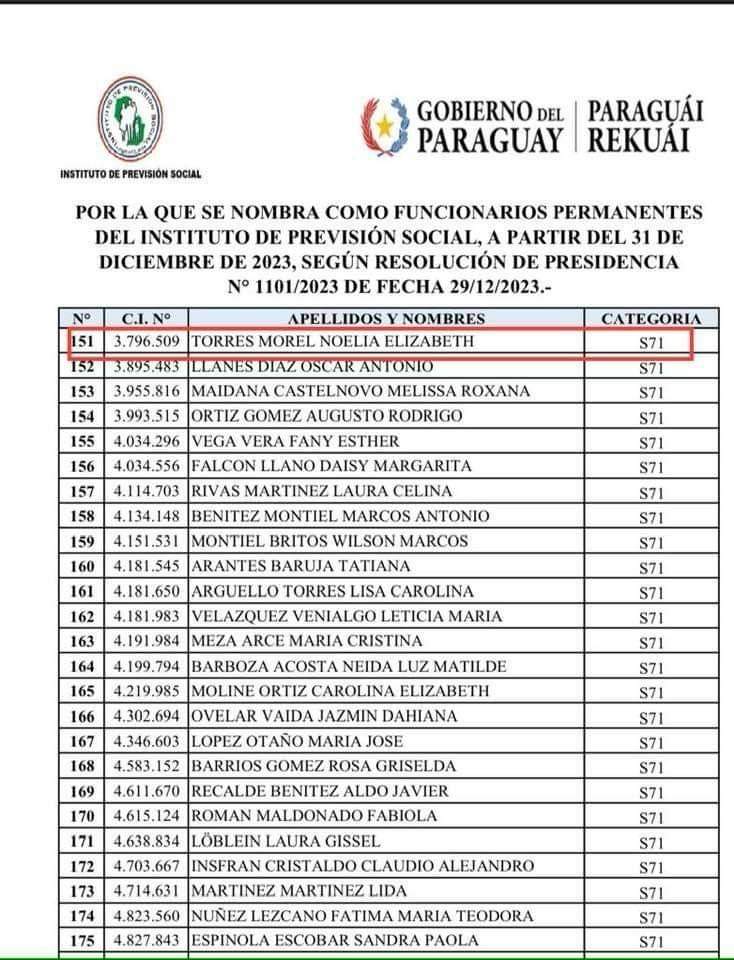 La hermana del gobernador, colorado-cartista, César Landy Torres ya está mejor en IPS, se trata de Mirna Torres Arguello quien fue nombrada como funcionaria permanente de la previsional.