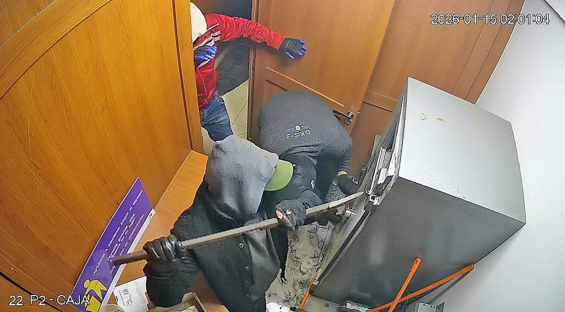 Tras neutralizar al portero, los delincuentes se dirigieron hasta la zona administrativa, en la planta alta del edificio, donde se encuentra la bóveda de la empresa. Allí intentaron forzar el sistema de seguridad utilizando una amoladora, pero al no lograr abrirla, optaron por abandonar el lugar y huir.
