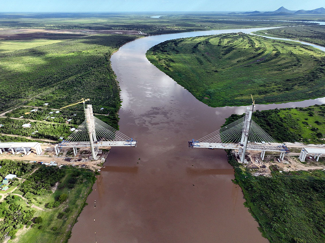 Las dovelas que conforman el tablero del Puente de la Bioceánica, que unirá a las ciudades de Carmelo Peralta y Porto Murtinho (Brasil), están a solo 118 metros de unirse en su tramo central. Así informó el Ministerio de Obras Públicas y Comunicaciones (MOPC), encargado de ejecutar la obra financiada por ITAIPU.