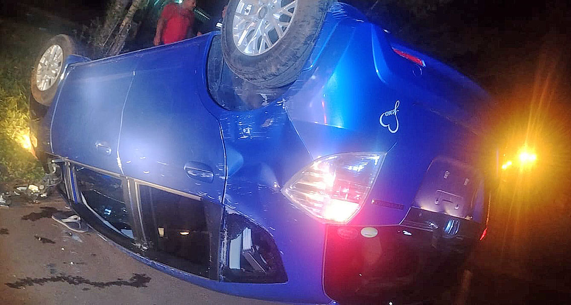Un aparatoso accidente de tránsito terminó en la aprehensión de dos sujetos durante la madrugada de este viernes 13 de febrero en el barrio Remansito de Ciudad del Este. El hecho ocurrió alrededor de las 00:10 horas sobre la avenida Manuel Ortiz Guerrero, cuando un automóvil Honda Fit, color azul, que circulaba a alta velocidad, perdió el control y volcó sobre la calzada. Los ocupantes, identificados como Alcides Gamarra Silvero (46) y Héctor Ramón Rojas (41), salieron por sus propios medios del habitáculo sin lesiones de gravedad.