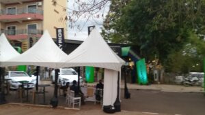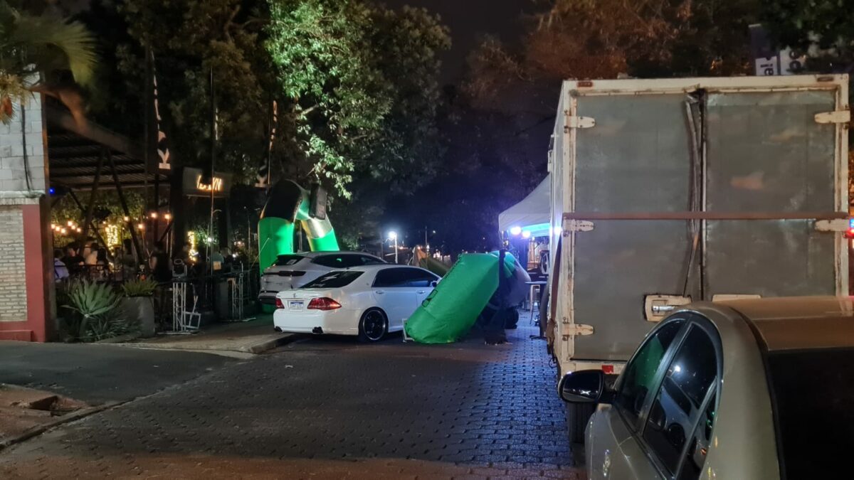 Pero en plena calle colocaron toldos y debajo de los mismos mesas y sillas para ampliar el espacio físico de Brooklyn en plena calle. También había dos vehículos en exhibición en plena calle y uno de ellos de la marca china BYD. Esto fue hasta que vino el viento fuerte y tuvieron que desmontar los inflables, pero la calle siguió cerrada, perjudicando a los otros comerciantes de la zona.