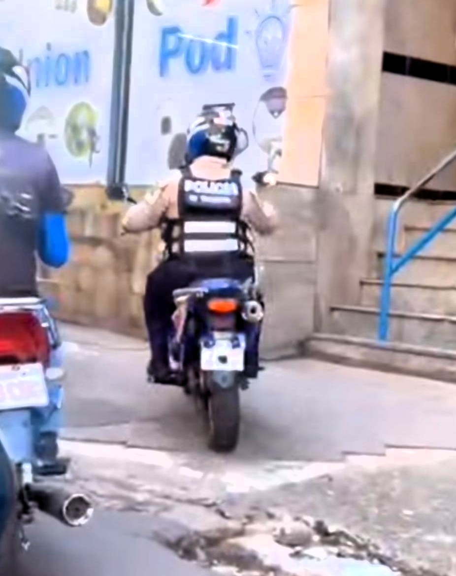 Un funcionario de la Policía Municipal de Tránsito (PMT), que tiene un nuevo uniforme, pero con las mañas viejas, se topó con un embotellamiento sobre la avenida Carlos Antonio López, en la zona comercial de Ciudad del Este. El “zorro” no dudó, subió en la vereda con su biciclo y siguió camino. Los otros motociclistas no perdieron tiempo y comenzaron a hacer lo mismo. Quien va a pagar la multa, y hasta puede ser tipificado como exposición al peligro en el tránsito terrestre, atendiendo a que puso en peligro la vida de los transeúntes. ¿Y qué dirá ahora el intendente, Dani Pereira Mujica?